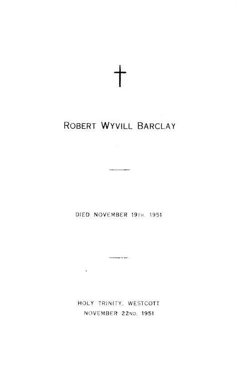 Aug 22, 2018 / Dorking Interest, First World War Memorial Names, Interest Group, Mole Valley Area Interest, Surrey Interest, Westcott Interest, Westcott Local History Group, Wey & Tillingbourne Area Interest Bury Hill Documents joshua / Funeral-of-Robert-Barclay-1951-1 Image 1 of 7
